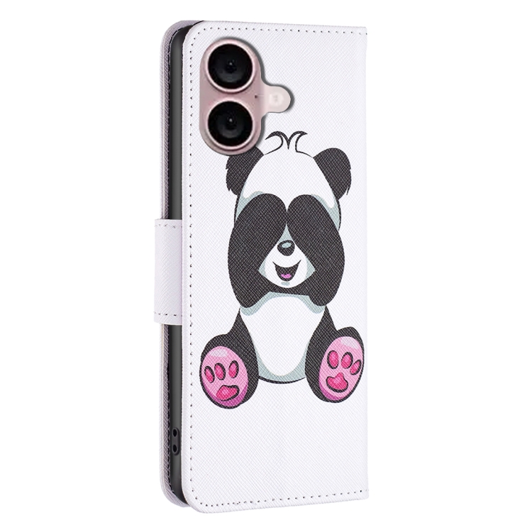 Funda de Cuero para iPhone 16 con Tapa y Patrón de Dibujo de Colores (Panda)
