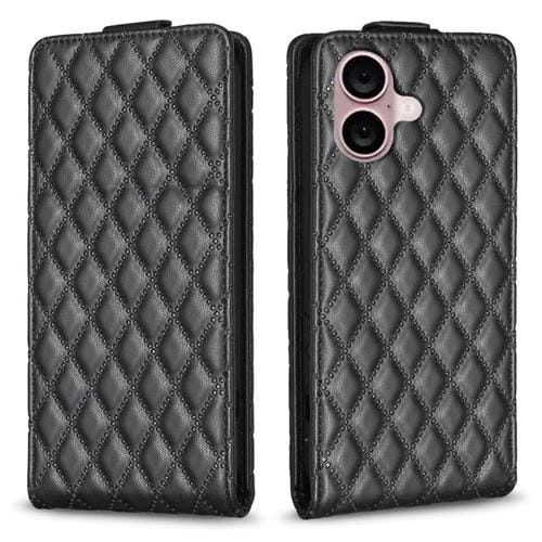 Estuche para teléfono iPhone 16 Plus Cuero con tapa vertical Diamond Lattice (Negro)