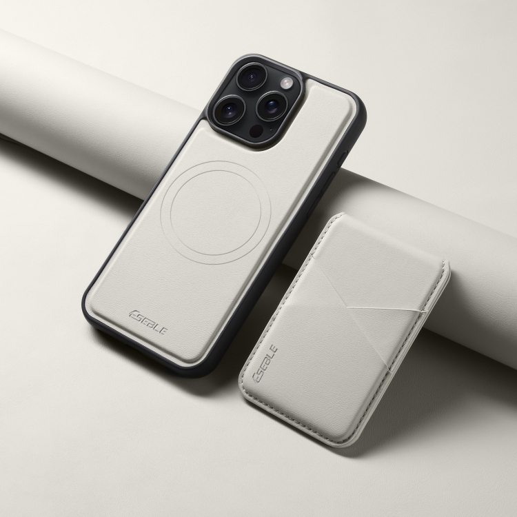 Funda de Cuero Eseble E3 para iPhone 16 Pro con Textura Lisa y Ranuras para Tarjetas Magsafe Rfid (Marfil)