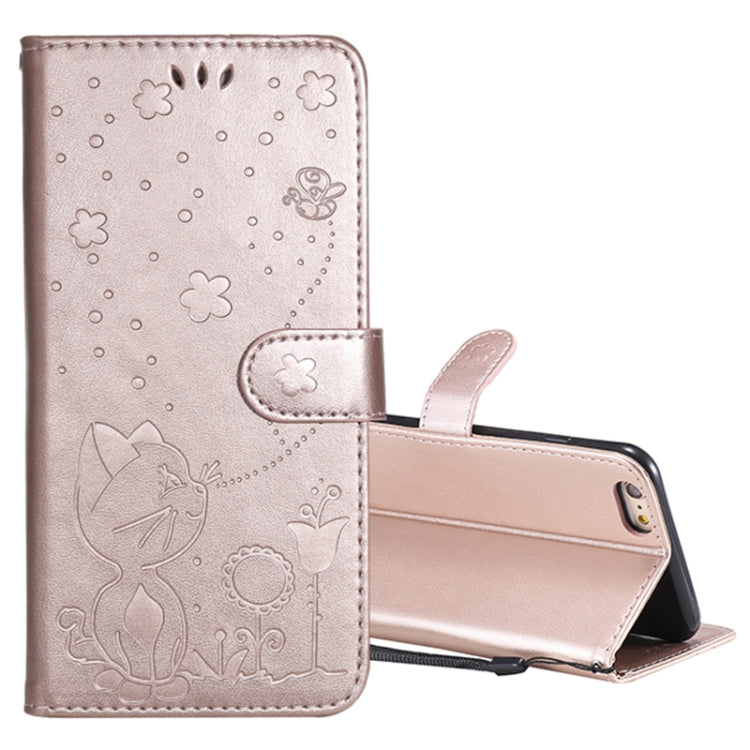 Funda para iPhone 6 Plus Cat Bee Cuero Abatible Horizontal Soporte Ranuras Tarjetas Billetera (Oro Rosa)