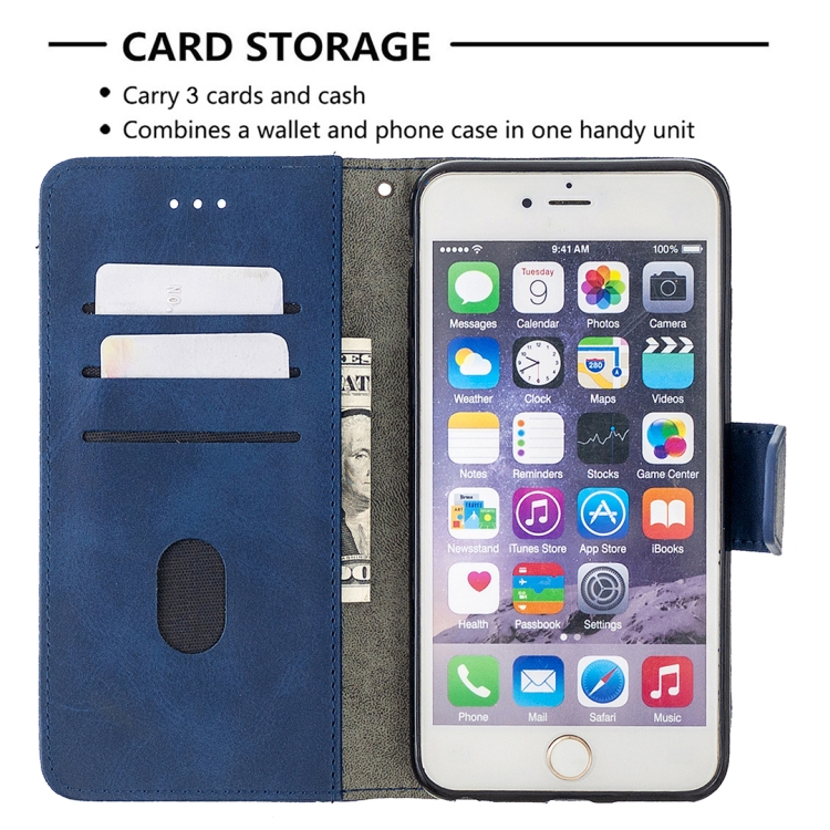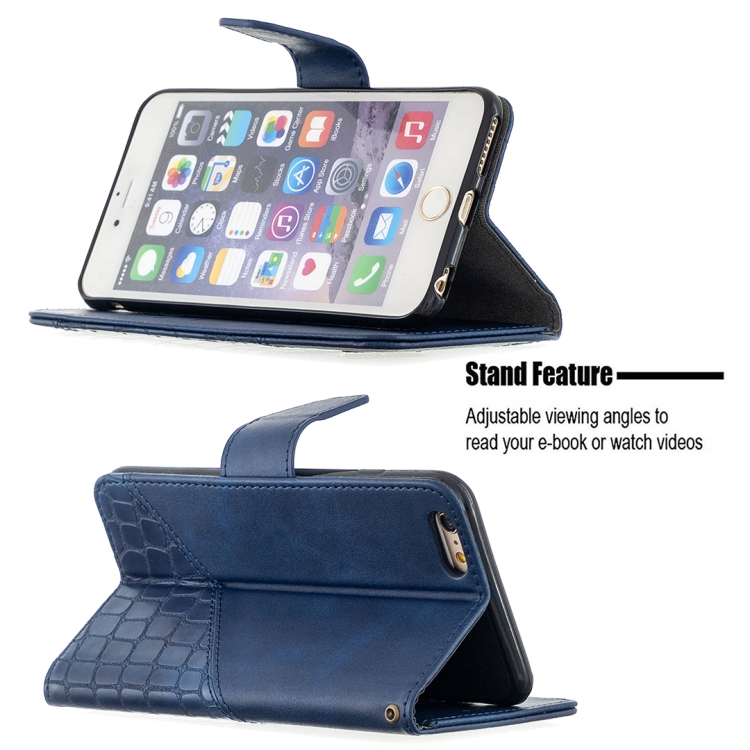 Funda para iPhone 6 Plus Cuero de PU Textura Cocodrilo Tapa Horizontal Billetera Soporte Ranuras para Tarjetas (Azul)