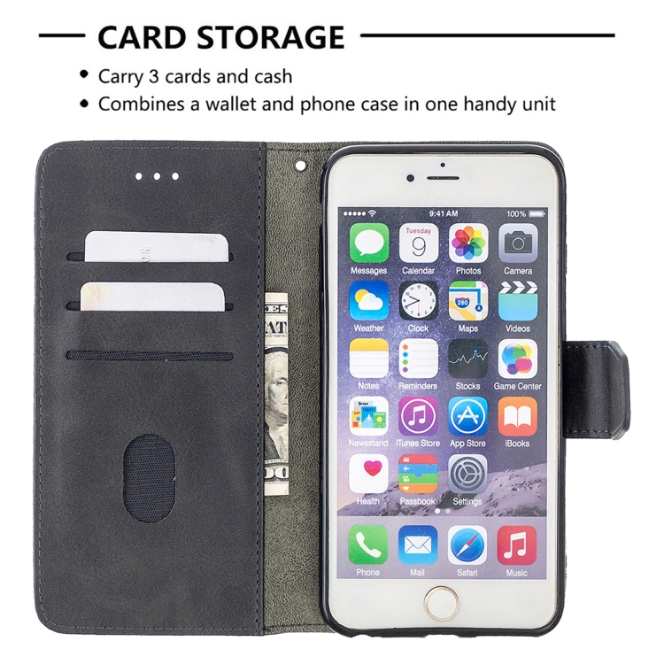 Funda de Cuero Pu para iPhone 6 Plus con Tapa Horizontal, Billetera, Soporte y Ranuras para Tarjetas (Negro)