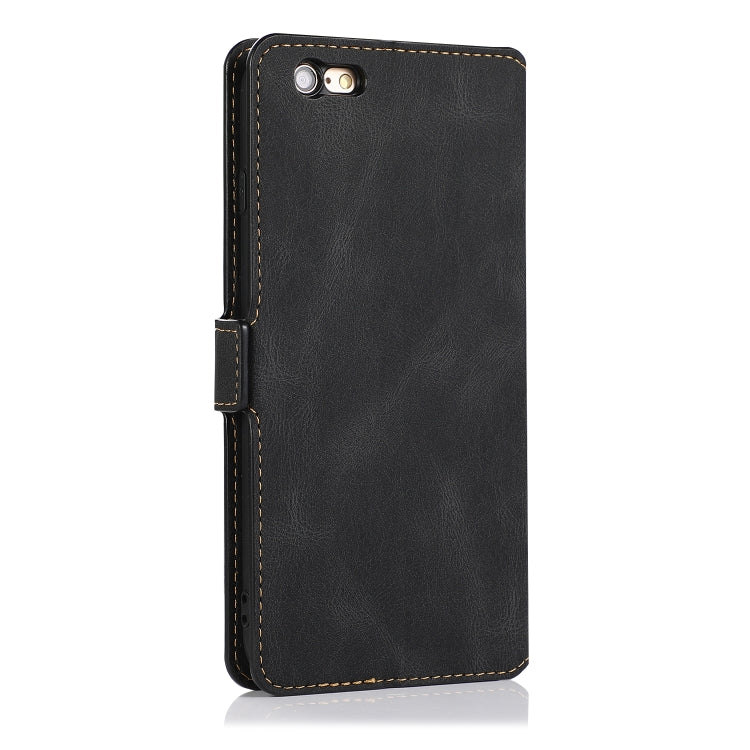 Estuche de Cuero para iPhone 6 Plus con Cierre Magnético Horizontal Soporte Ranuras Tarjetas Marco Fotos Billetera (Negro)