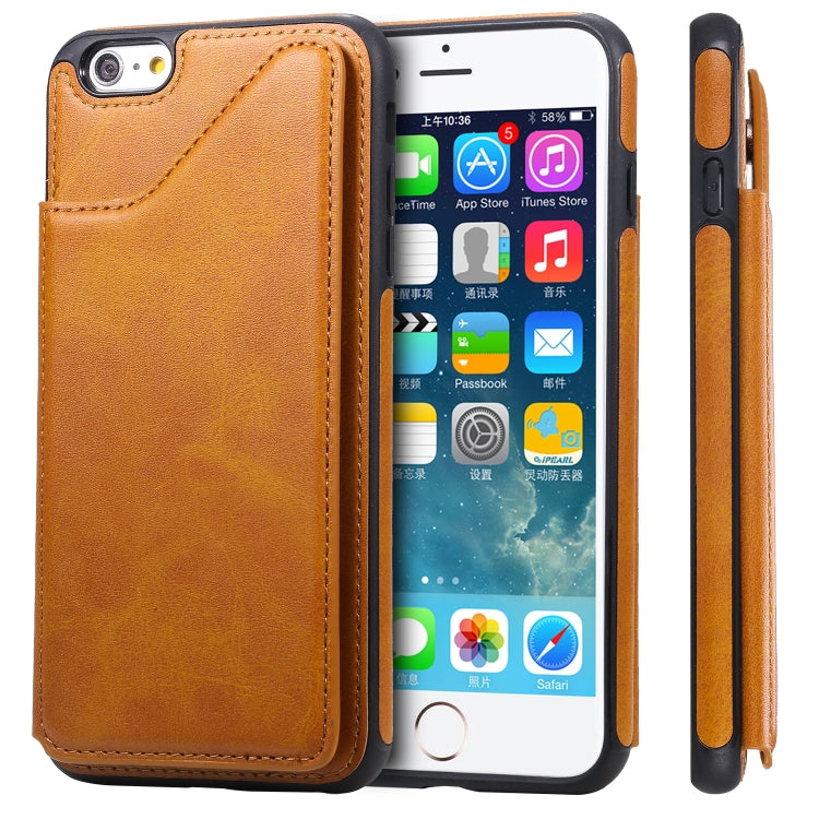 Funda Protectora iPhone 6 Plus Textura Becerro a Prueba de Golpes con Soporte y Tragamonedas (Marrón)