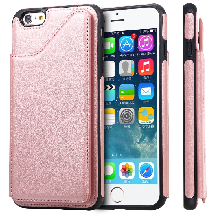 Funda Protectora iPhone 6 Plus Textura Becerro a Prueba de Golpes con Soporte y Tragamonedas (Oro Rosa)