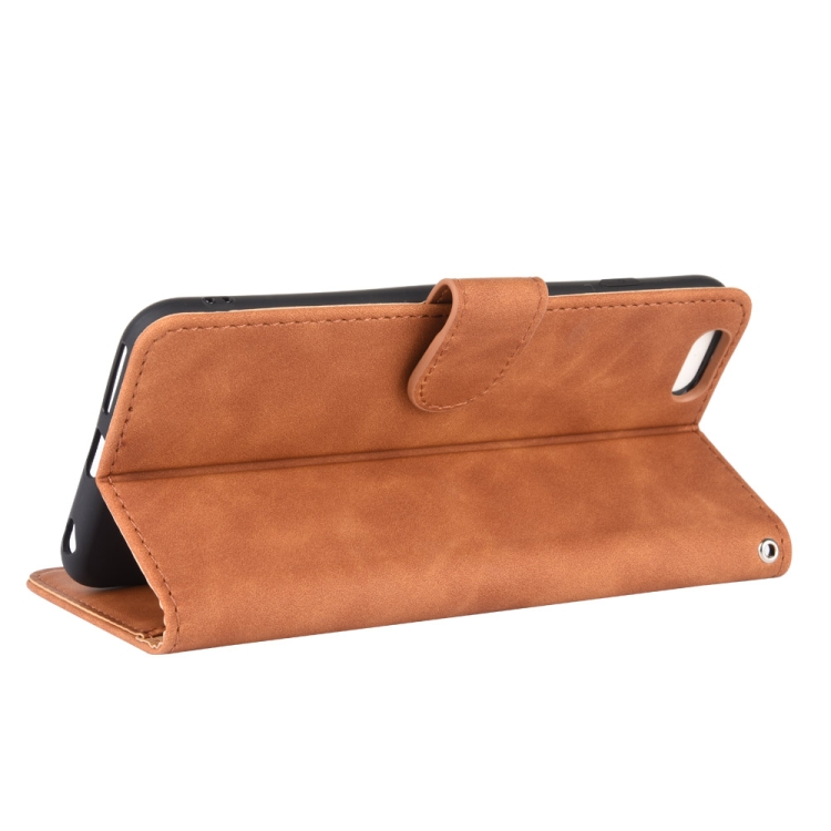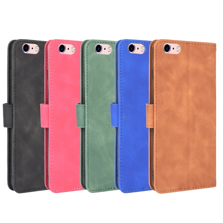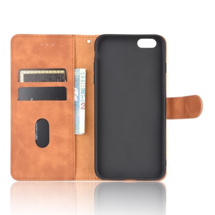 Funda para iPhone 6 Plus y 6S Plus Hebilla Magnética Piel Sintética Textura Becerro Abatible Horizontal Soporte Ranuras Tarjetas Billetera (Marrón)
