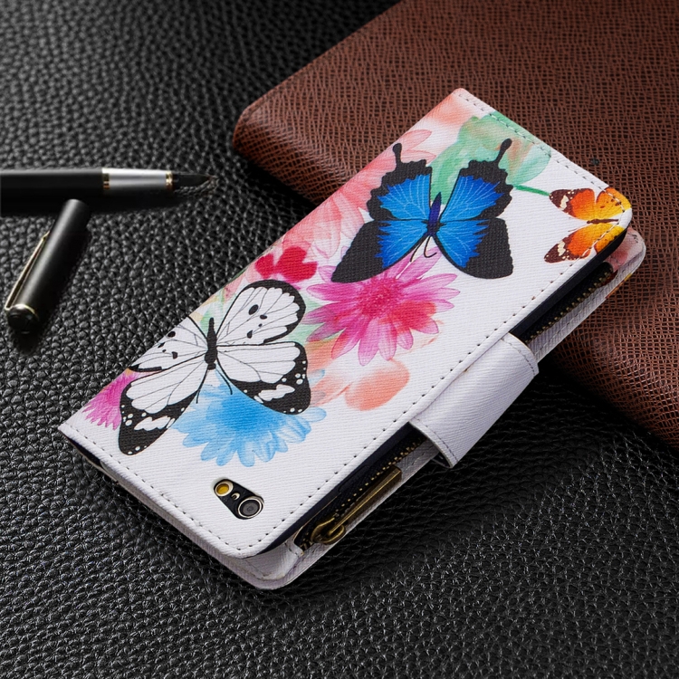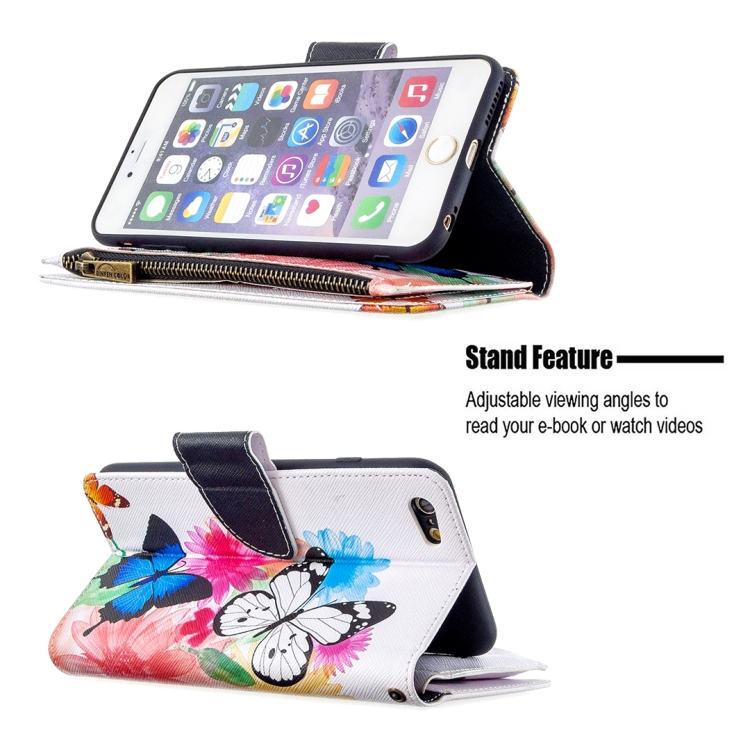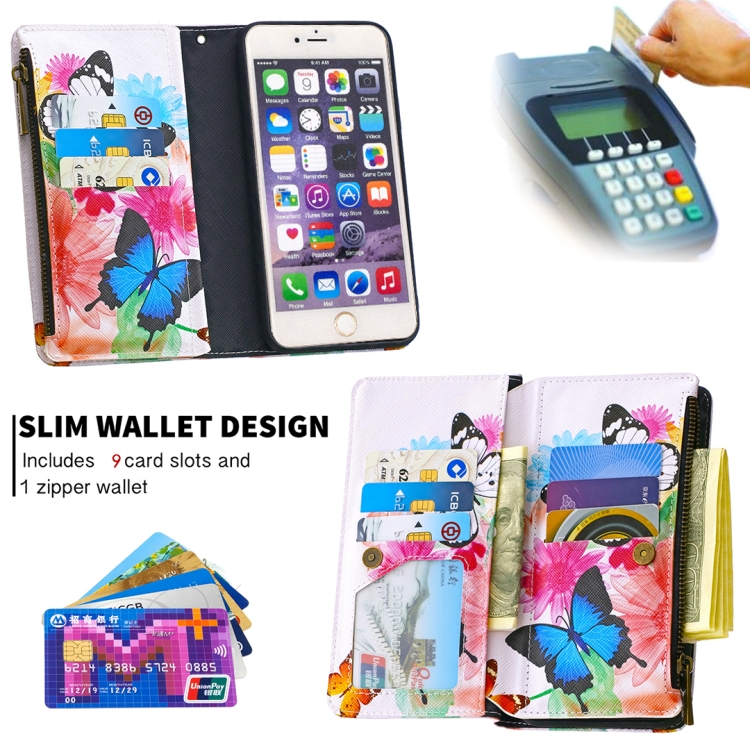Funda de Cuero para iPhone 6S Plus y 6 Plus con Patrón de Dibujo, Cremallera, Tapa Horizontal, Soporte y Ranuras para Tarjetas
