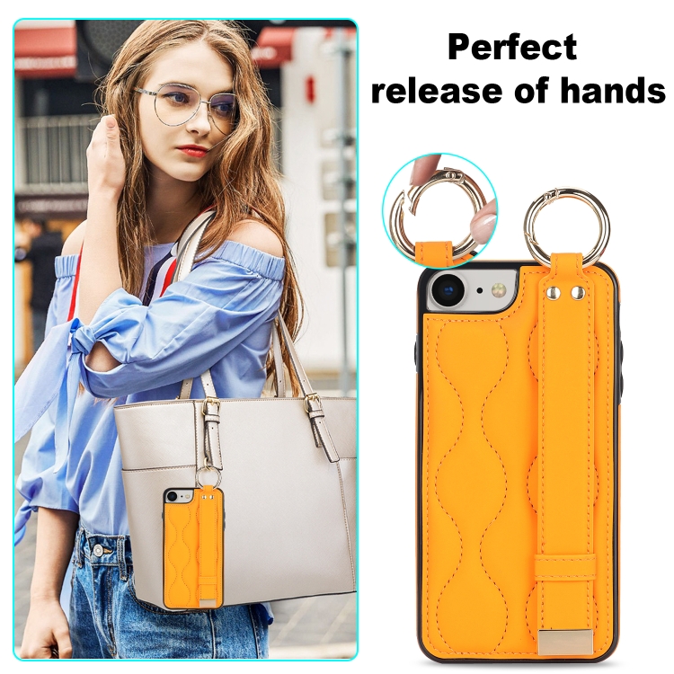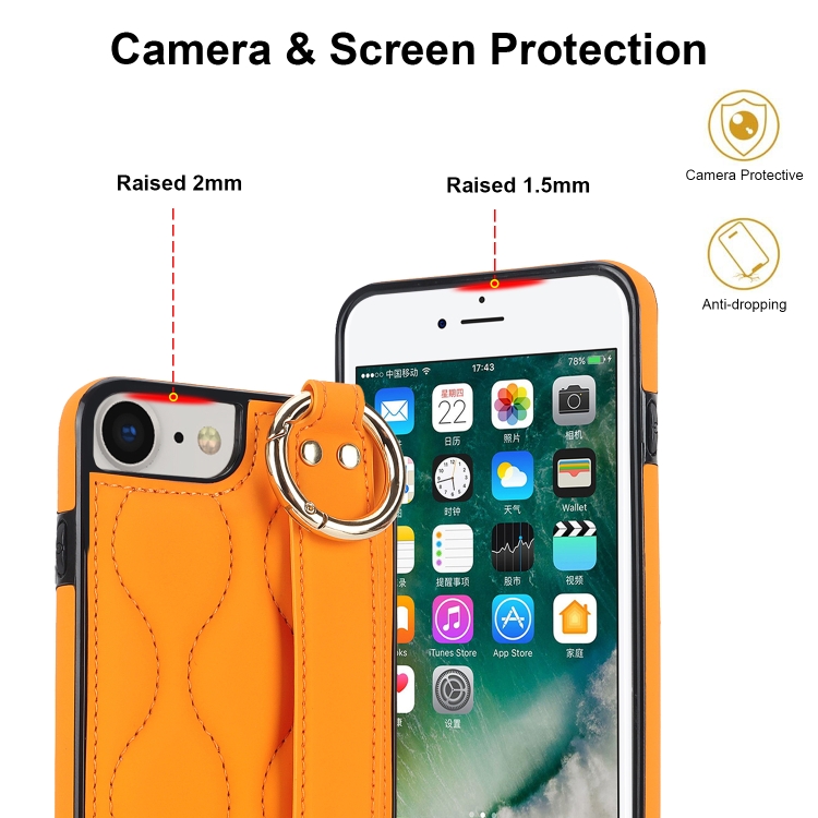 Funda para Teléfono iPhone 7 Antideslizante Cobertura Completa Anillo PU con Muñequera (Naranja)
