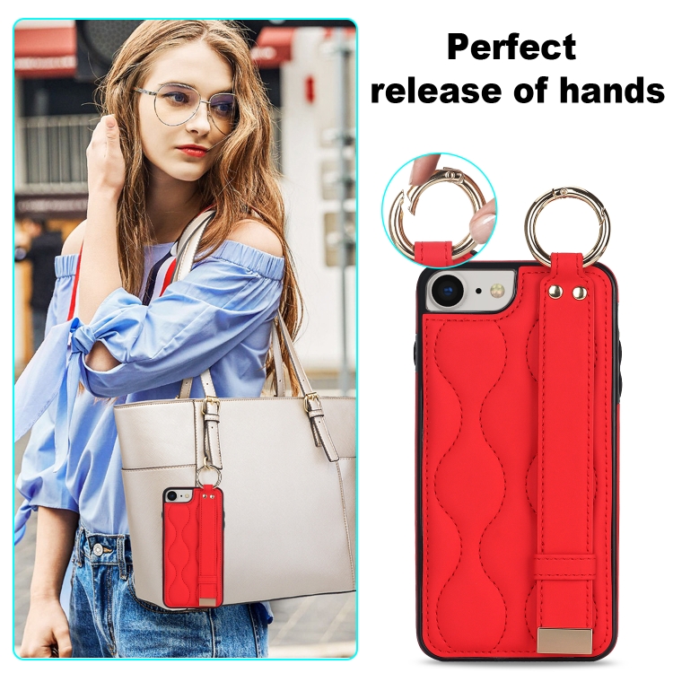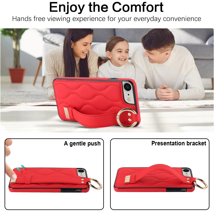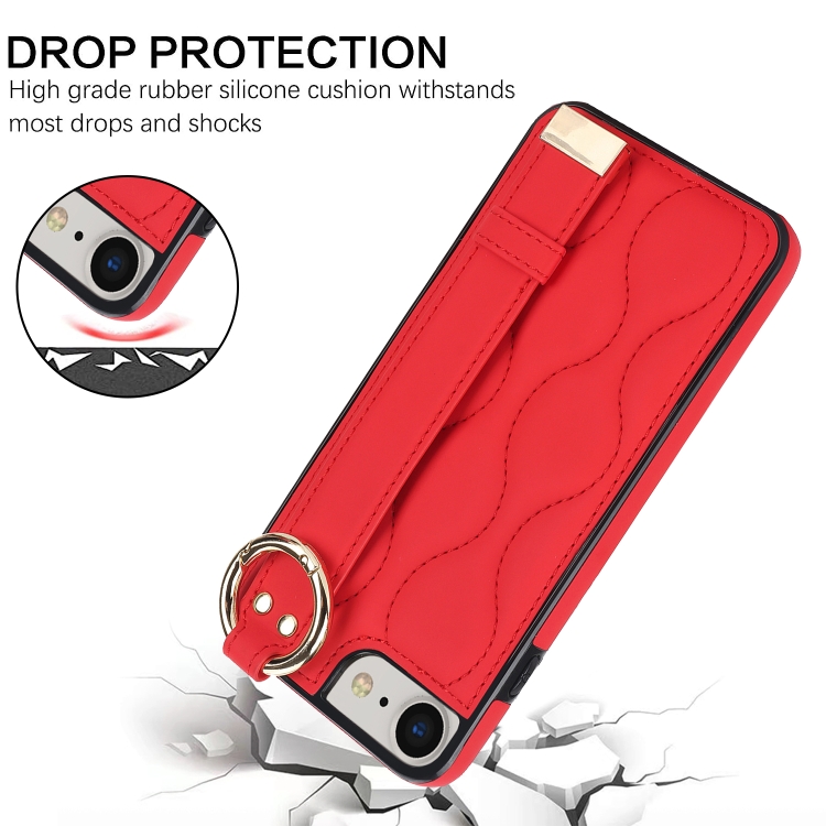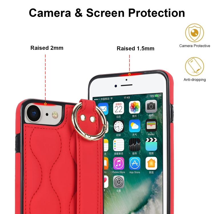 Funda para iPhone 7 Antideslizante Cobertura Completa Anillo PU con Muñequera (Rojo)