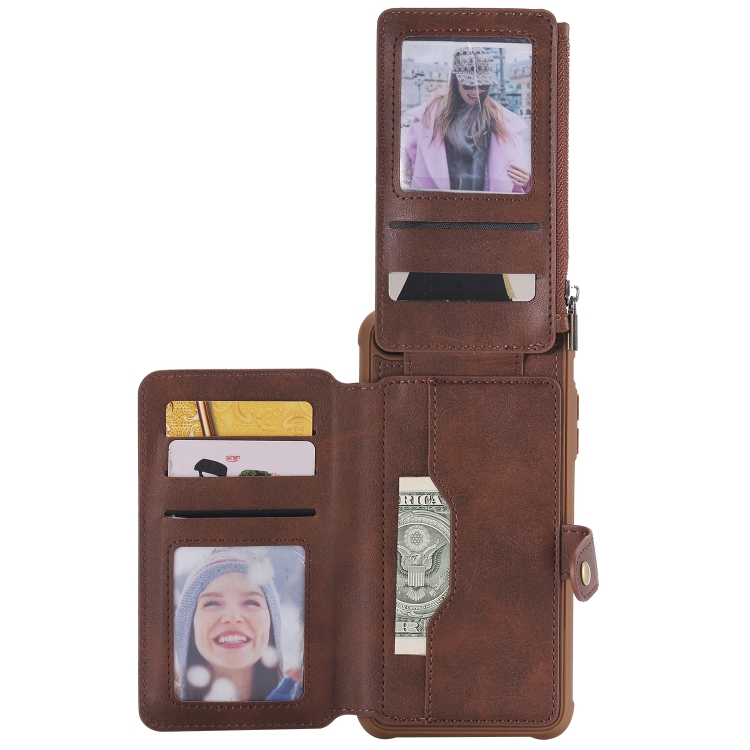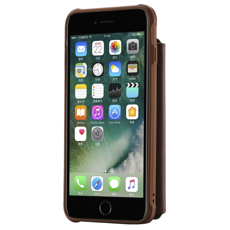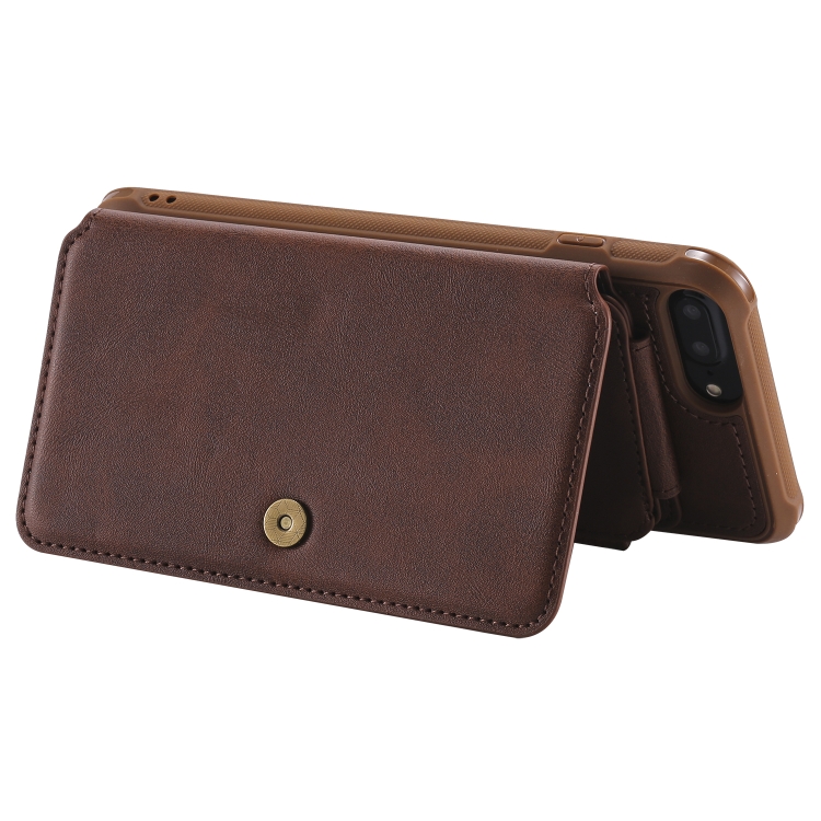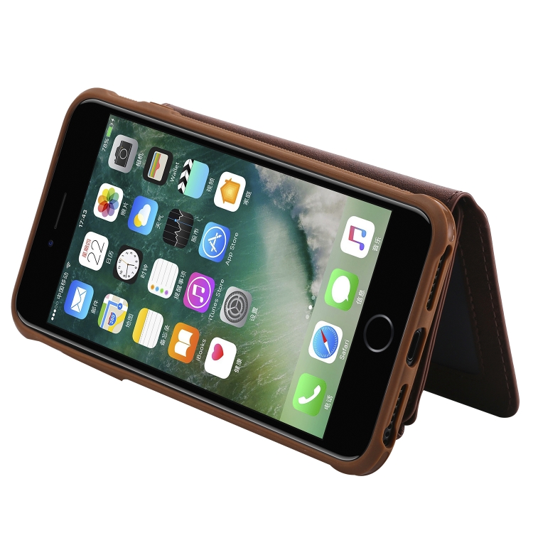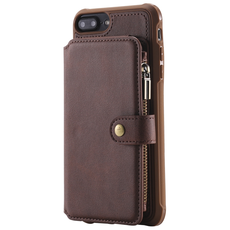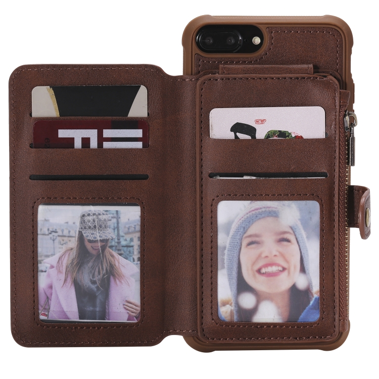 Funda Protectora iPhone 7 Plus 8 Plus a Prueba de Golpes con Cremallera Ranuras para Tarjetas Soporte y Función Billetera (Café)