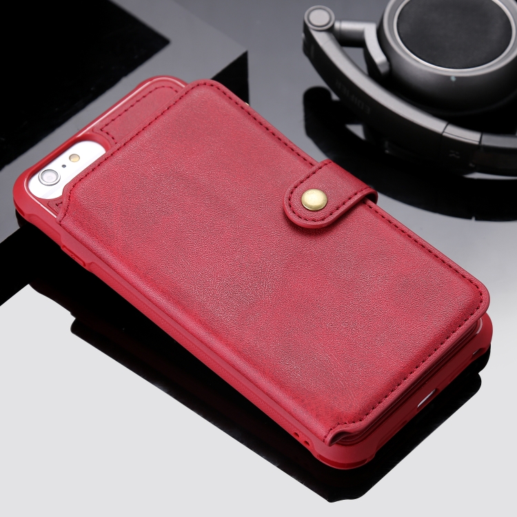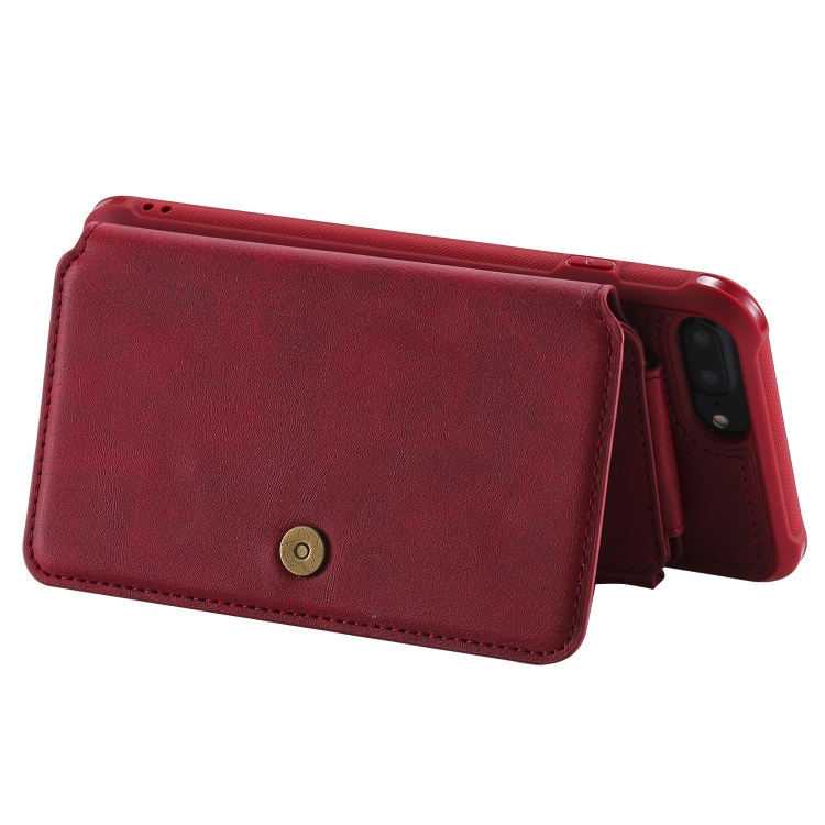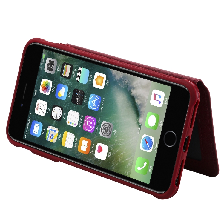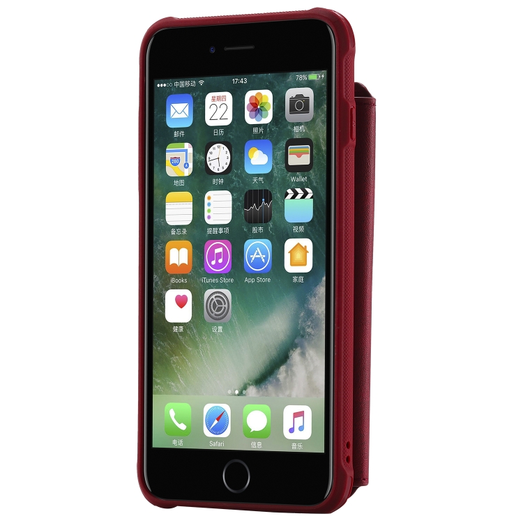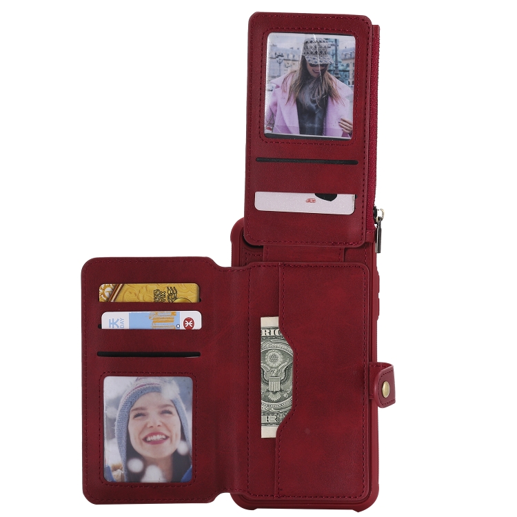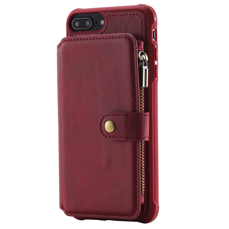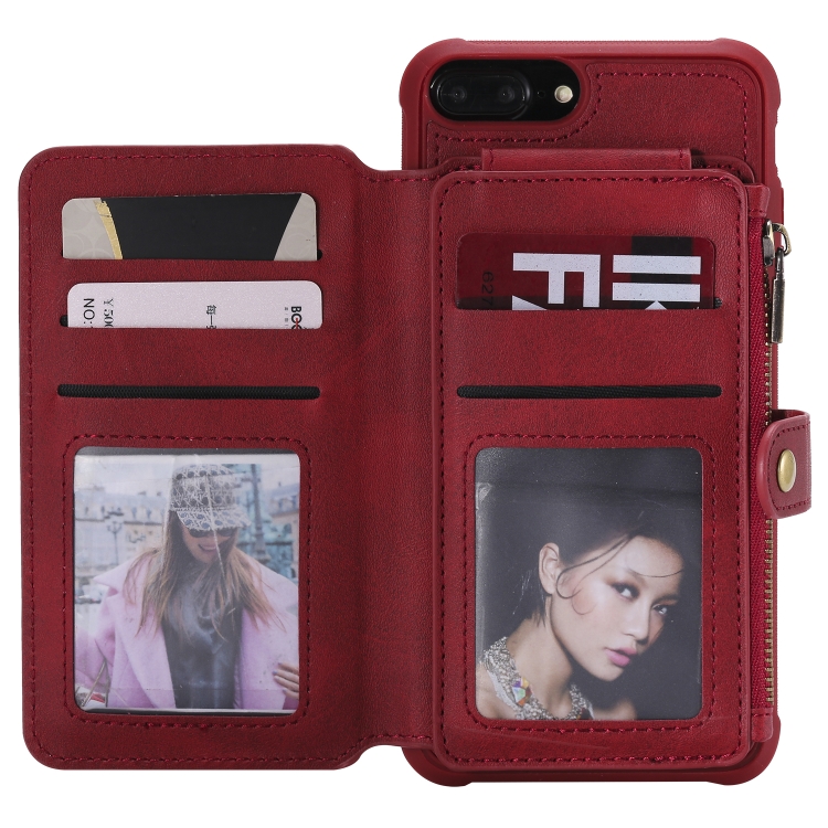 Funda Protectora para iPhone 7 Plus 8 Plus con Cremallera Ranuras para Tarjetas Soporte Fotos Billetera (Rojo)