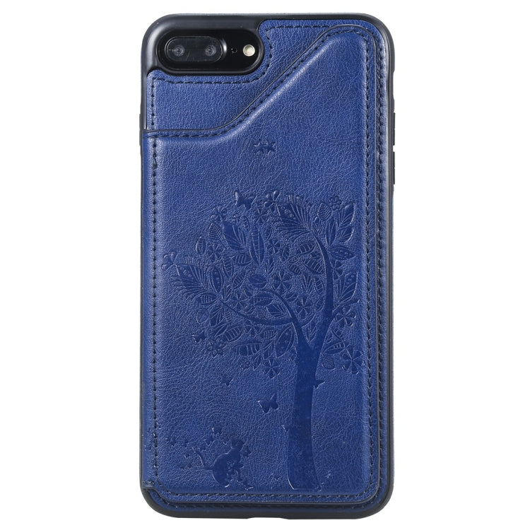 Funda Protectora para iPhone 7 Plus 8 Plus con Patrón de Árbol de Gato Ranuras Tarjetas Marco Fotos (Azul)