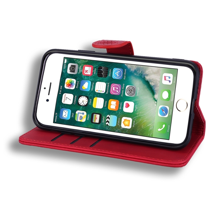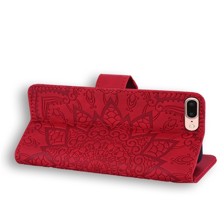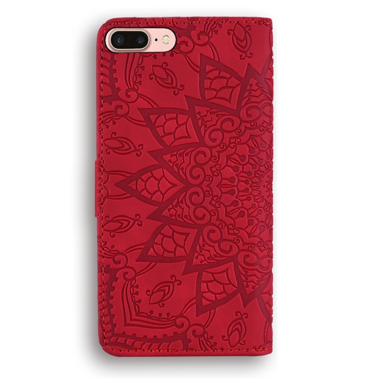 Funda para iPhone 7 Plus y 8 Plus Cuero en Relieve Patrón Diamond Mandala Plegable Doble con Billetera Soporte y Ranuras para Tarjetas (Rojo)