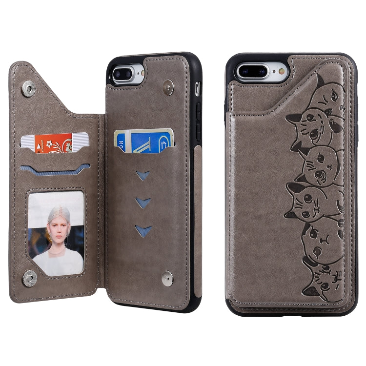 Estuche Protector para iPhone 7 Plus / 8 Plus Six Cats con Soporte, Ranuras para Tarjetas y Marco de Fotos (Gris)