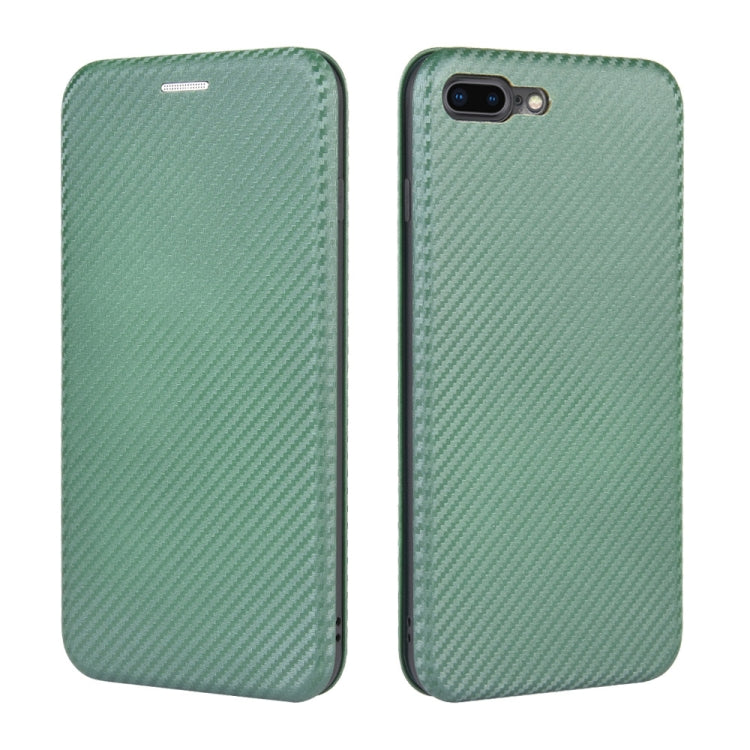 Funda para iPhone 7 Plus 8 Plus Textura Fibra de Carbono Flip Horizontal Magnético TPU PC Cuero PU con Ranura para Tarjeta (Verde)