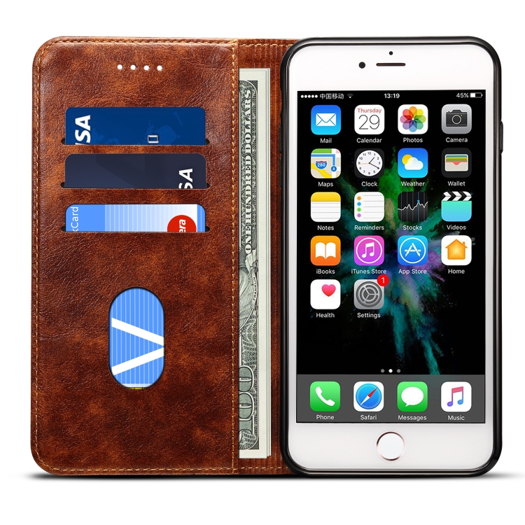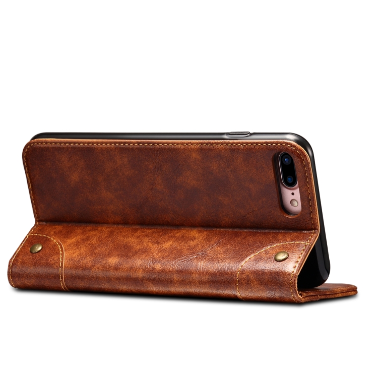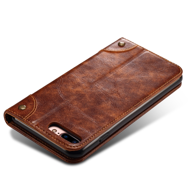 Funda de Cuero para iPhone 8 Plus 7 Plus Baroque Simple con Tapa Horizontal Soporte Ranuras Tarjetas Billetera (Marrón Claro)
