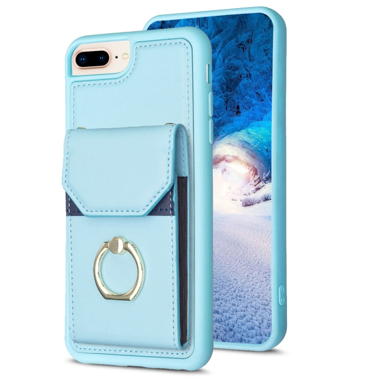 Funda para Teléfono Bf29 para iPhone 8 Plus y 7 Plus con Soporte para Anillo y Bolsa para Tarjeta (Azul)