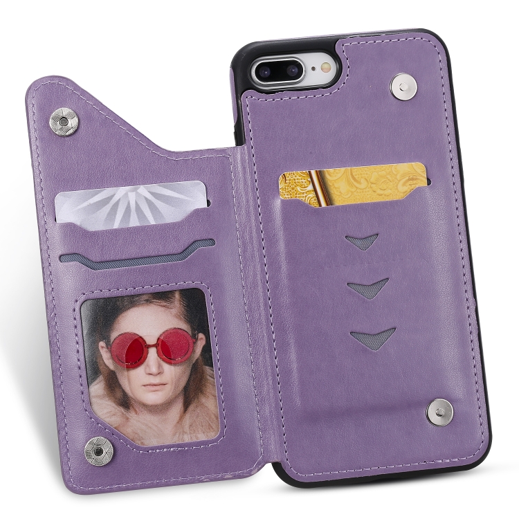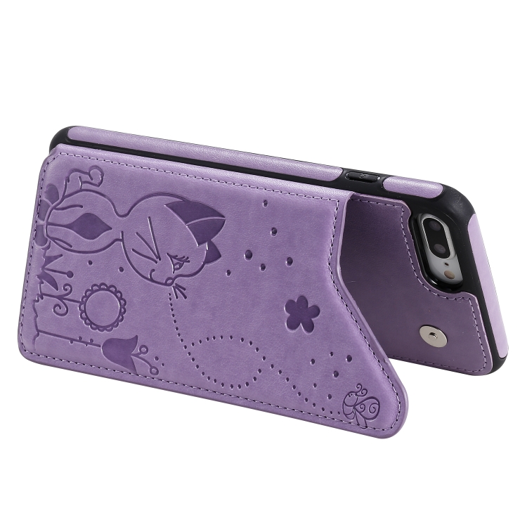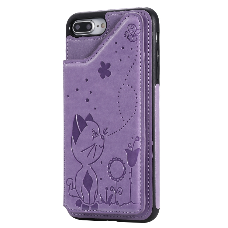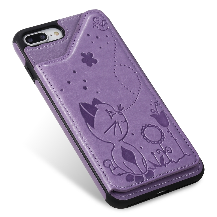 Estuche Protector Cat Bee para iPhone 8 Plus y 7 Plus a Prueba de Golpes con Ranuras para Tarjetas y Marco de Fotos (Púrpura)
