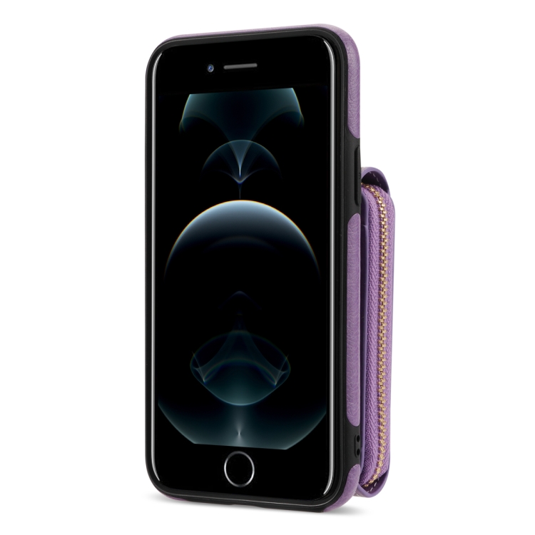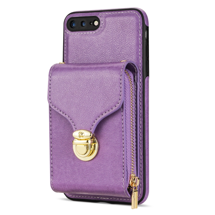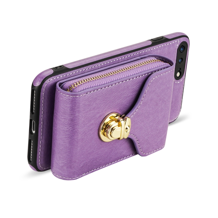 Funda para iPhone 8 Plus y 7 Plus con Cremallera Hardware Card Wallet (Púrpura)