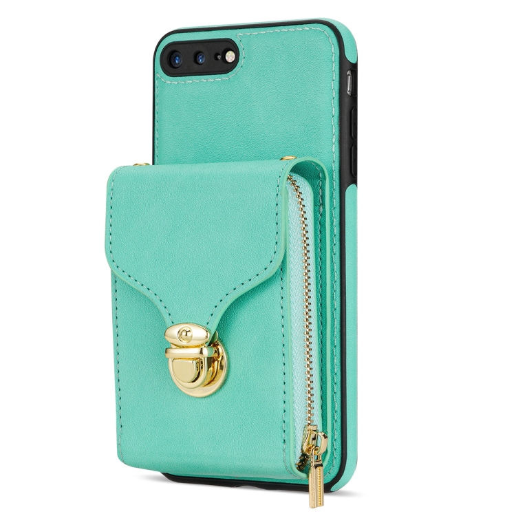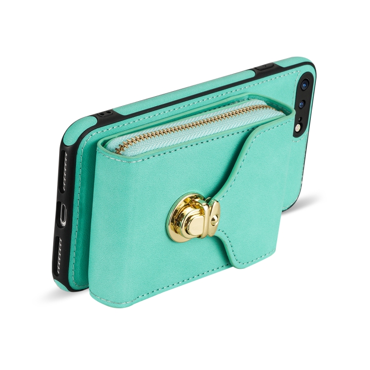 Funda para iPhone 8 Plus y 7 Plus con Cremallera Hardware Card Wallet (Verde Menta)