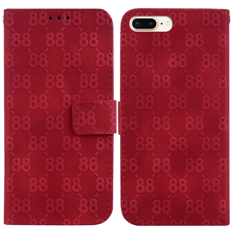 Estuche para Teléfono iPhone 8 Plus 7 Plus Cuero En Relieve Doble En Forma de 8 (Rojo)
