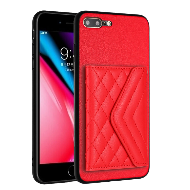 Funda para Teléfono iPhone 8 Plus/7 Plus Rfid con Bolsa para Tarjetas Textura Rómbica y Cordón Largo (Rojo)