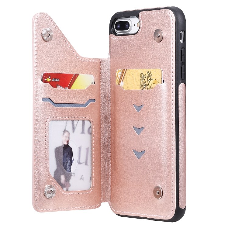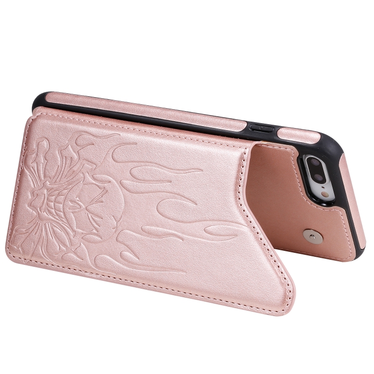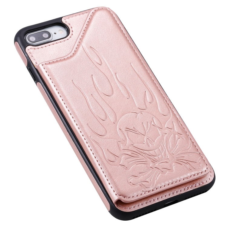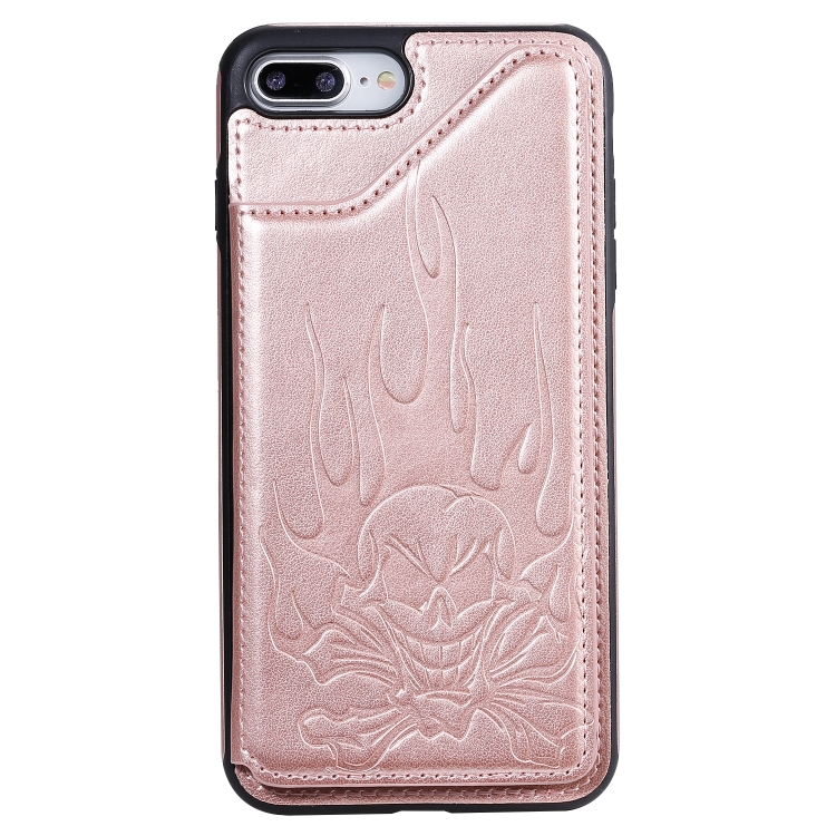 Funda Protectora iPhone 8 Plus 7 Plus Estampado Cabeza de Calavera Soporte Ranuras Tarjetas Billetera (Oro Rosa)