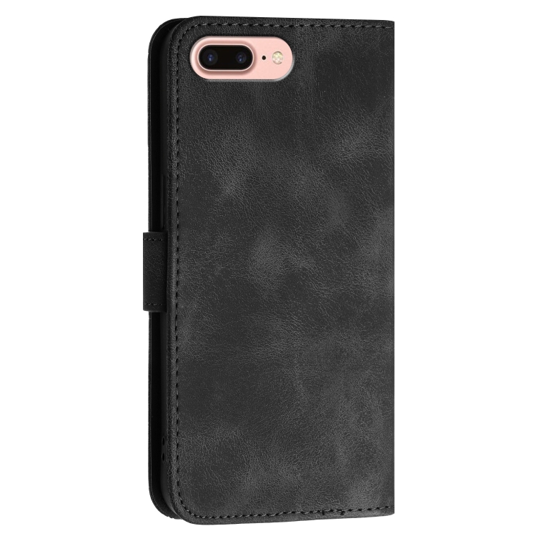 Funda de Cuero para iPhone 8 Plus y 7 Plus Yx0080 con Tapa y Cordón Diseño Mariposa y Cuadrícula (Negro)
