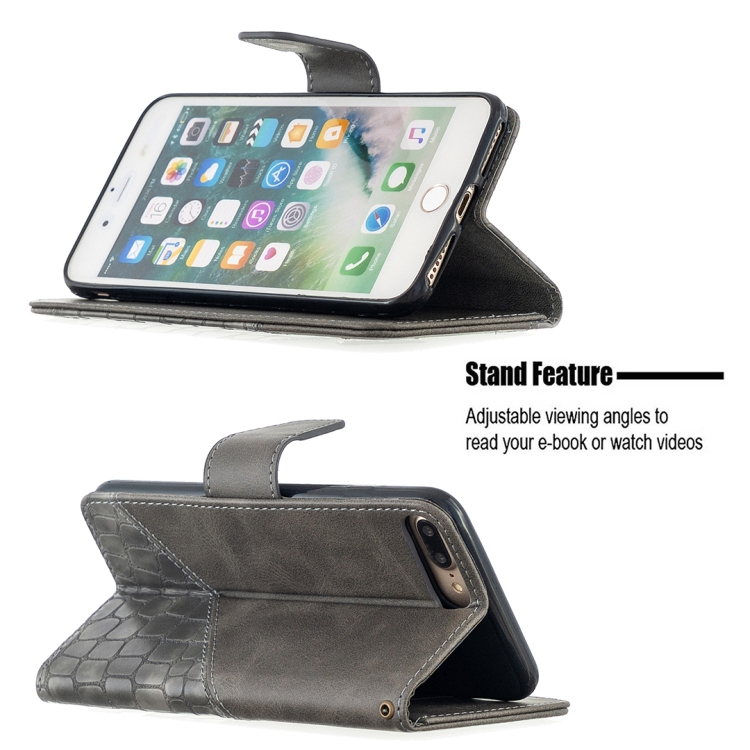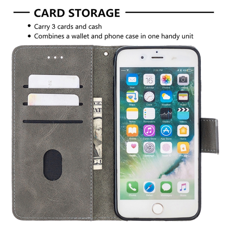 Funda para iPhone 8 Plus Cuero Pu con Tapa Horizontal Billetera Soporte y Ranuras para Tarjetas (Gris)