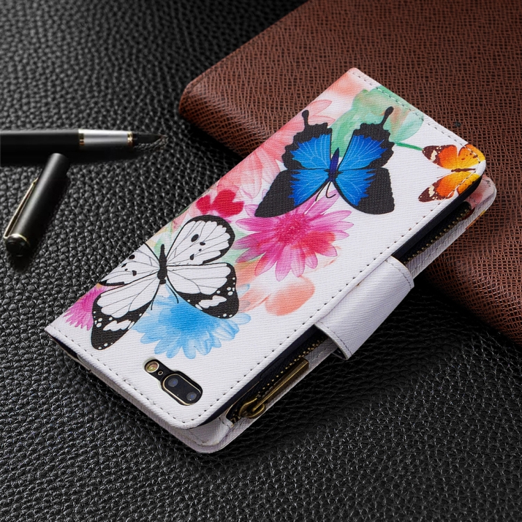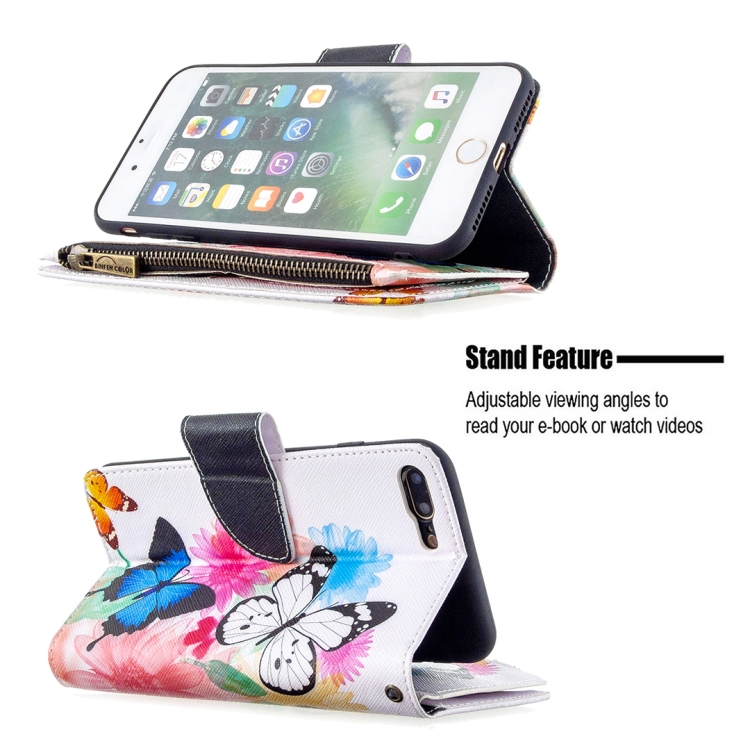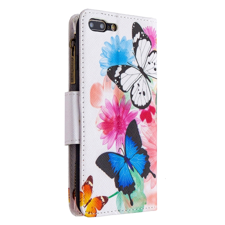 Funda de Cuero para iPhone 8 Plus y 7 Plus con Tapa Horizontal, Soporte, Ranuras para Tarjetas y Billetera (Dos Mariposas)