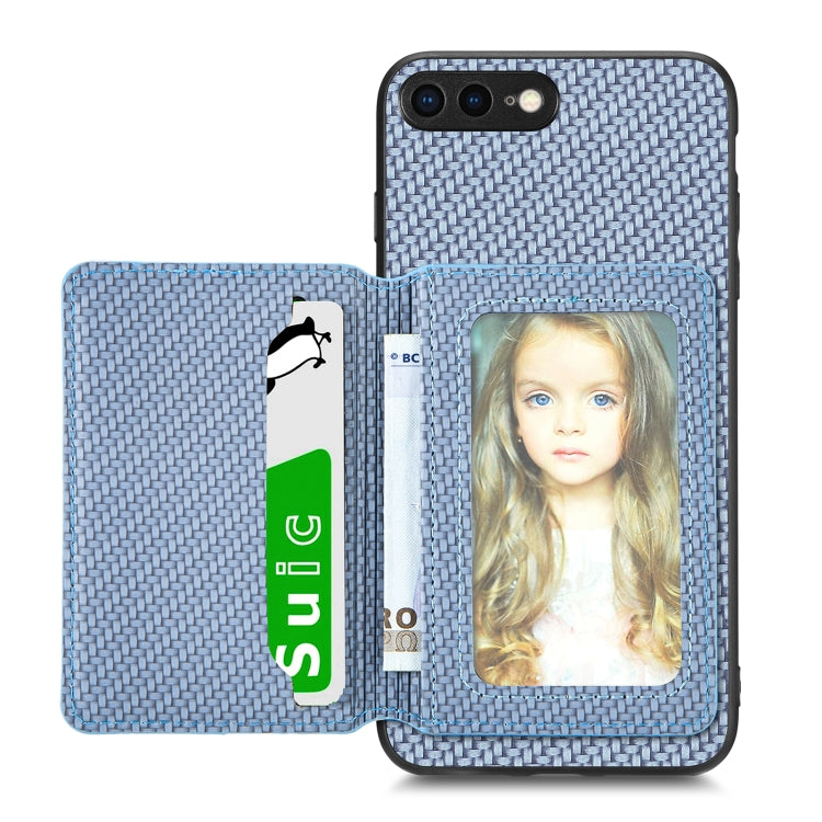 Funda de teléfono para iPhone SE 2022/2020/7/8 con bolsa de tarjeta magnética de fibra de carbono (Azul)