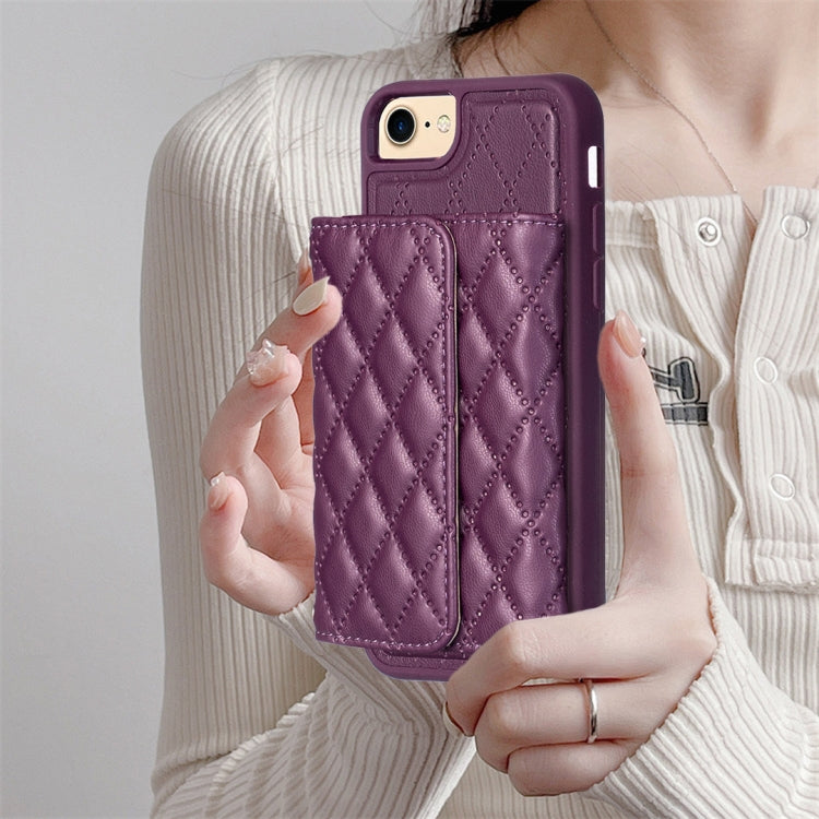 Estuche de teléfono cuero Rómbico con billetera horizontal para iPhone SE 2022 / SE 2020 / 7 / 8 (Púrpura Oscuro)