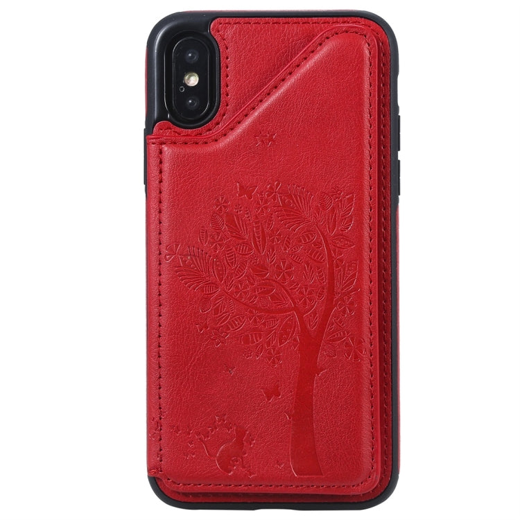 Funda Protectora para iPhone X Cat Tree Relieve Patrón a Prueba de Golpes con Ranuras para Tarjetas (Rojo)