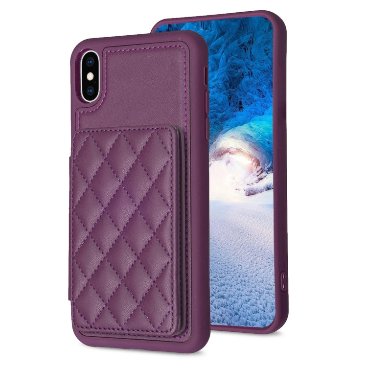 Funda para teléfono Bf25 Square Plaid Card Bag Holder para iPhone X / Xs (Morado Oscuro)