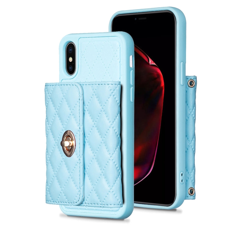 Caja de Teléfono de Cuero Rombal para iPhone X / Xs con Hebilla de Metal Horizontal (Azul)