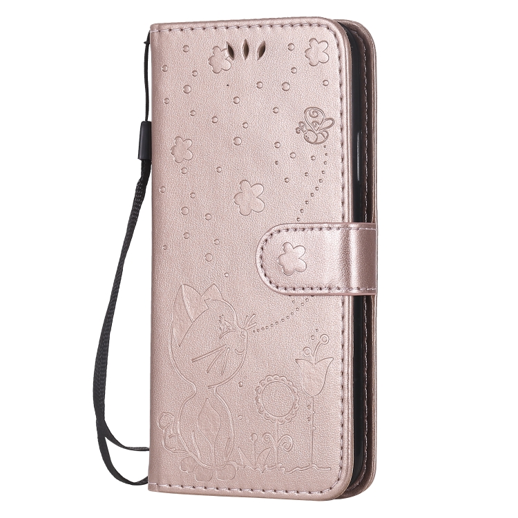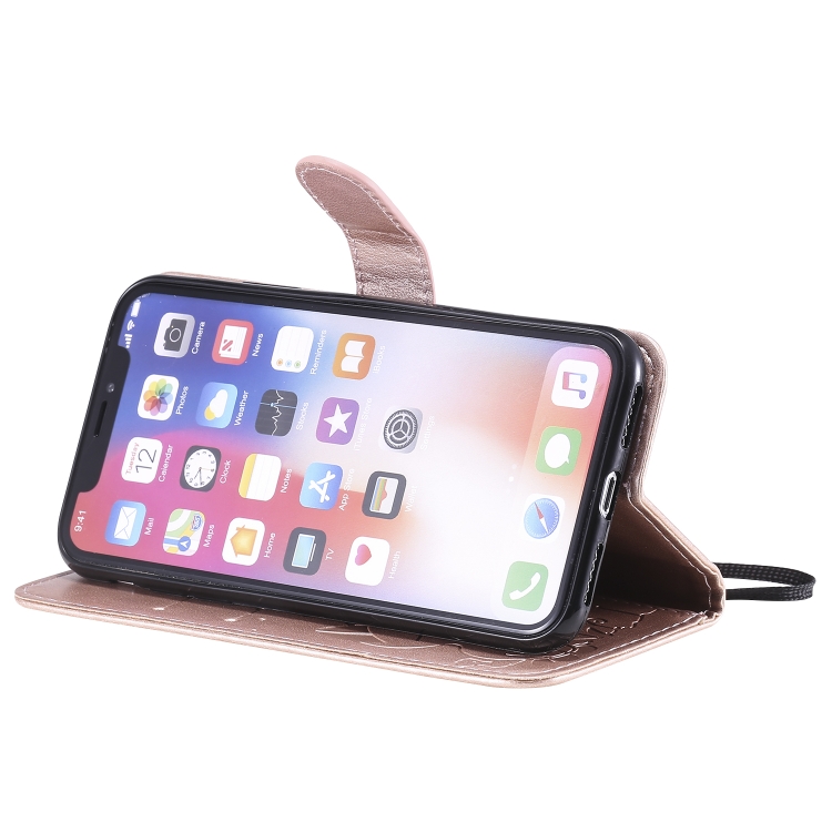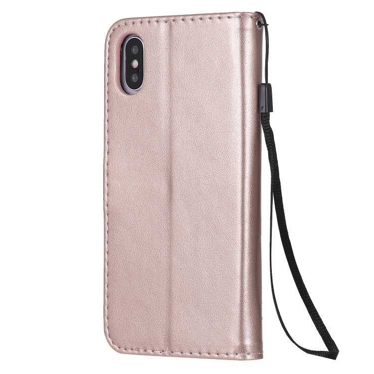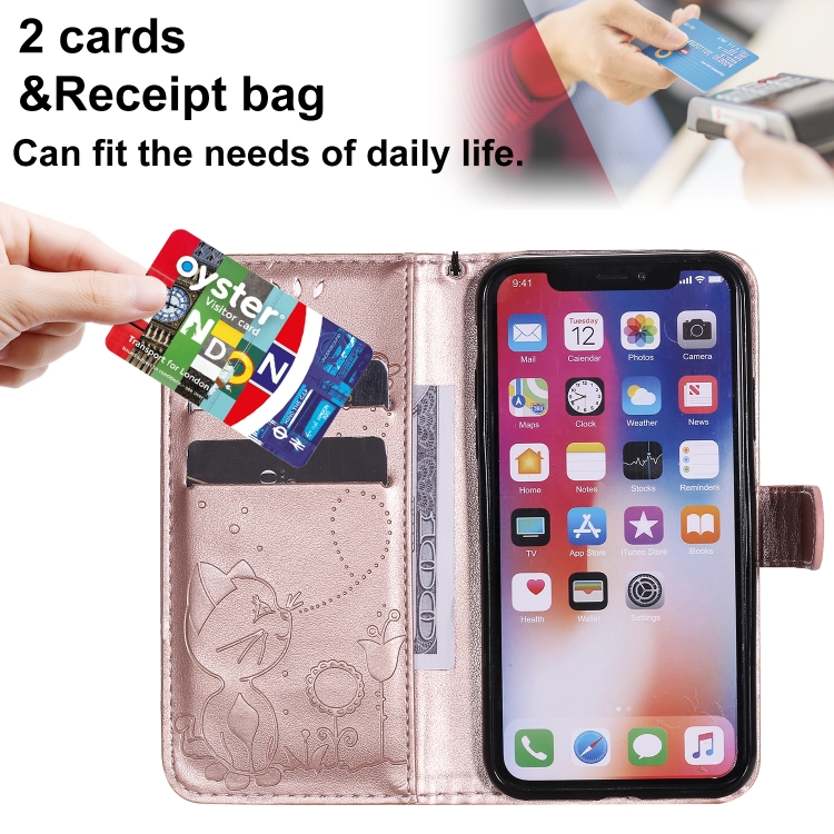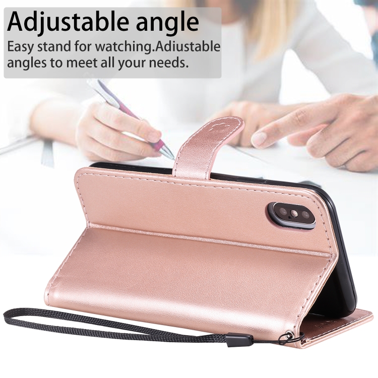 Funda de cuero Cat Bee para iPhone X Xs con tapa horizontal, soporte, ranuras para tarjetas y billetera (Oro Rosa)