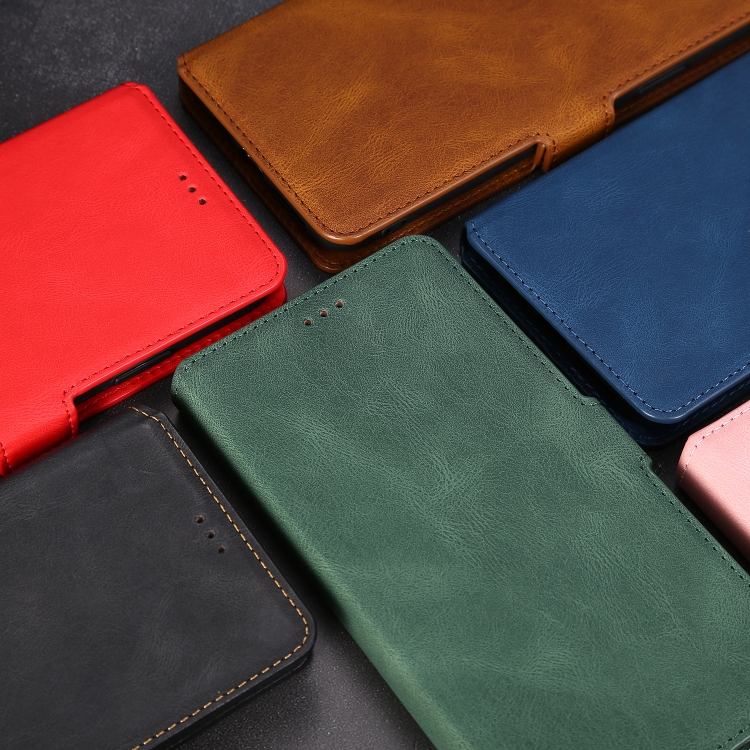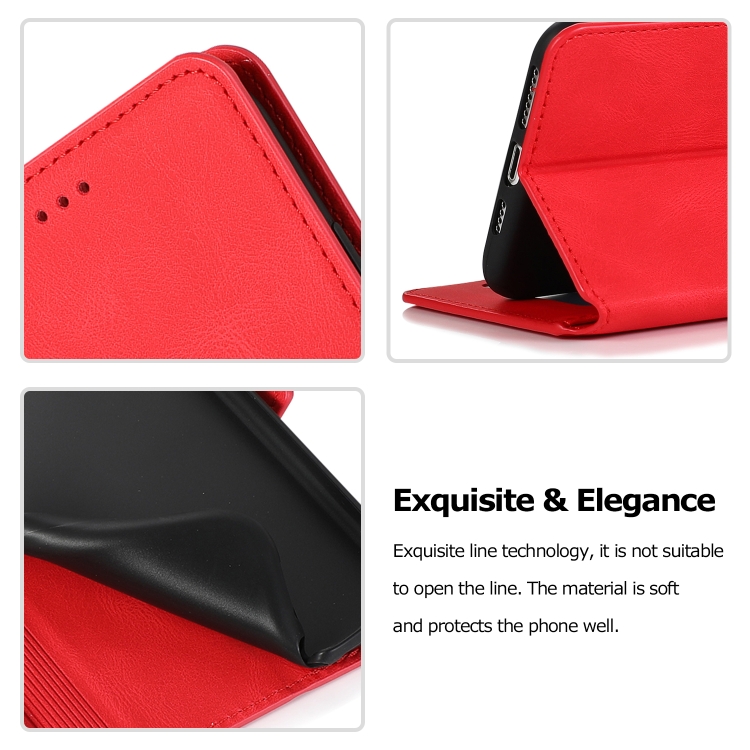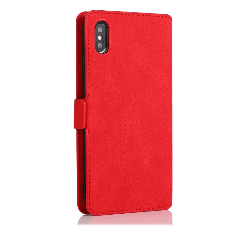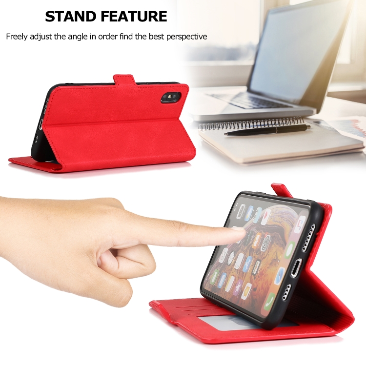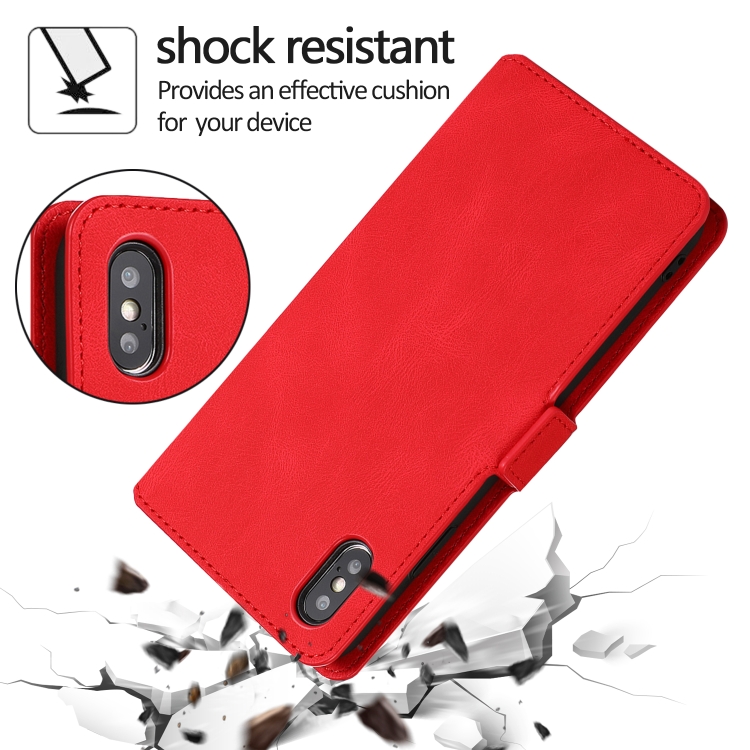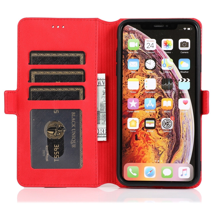 Estuche de Cuero para iPhone X Xs Cierre Magnético Tapa Horizontal Soporte Ranuras Tarjetas Marco Fotos Billetera (Rojo)