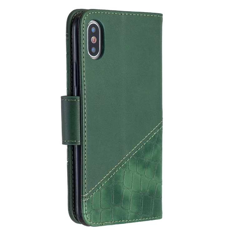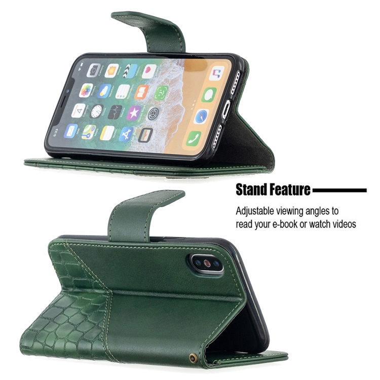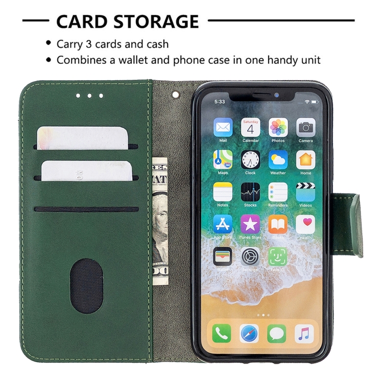 Funda de Cuero de Pu para iPhone X Xs con Tapa Horizontal Billetera Soporte Ranuras para Tarjetas (Verde)