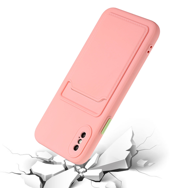 Funda Protectora TPU para iPhone X / Xs Ranura para Tarjeta a Prueba de Golpes (Rosa)