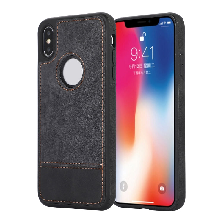Funda para iPhone X Xs Empalme Costura Caja de Teléfono de PU con Recorte Hueco (Negro)