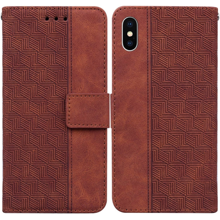 Estuche para Teléfono iPhone X Xs Cuero Relieve Geométrico (Marrón)