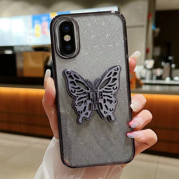 Estuche para teléfono TPU iPhone X Xs Mariposa 3D Brillo Degradado (Negro Degradado)