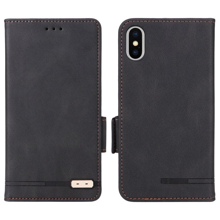 Funda de Cuero para iPhone X / Xs con Cierre Magnético (Negro)