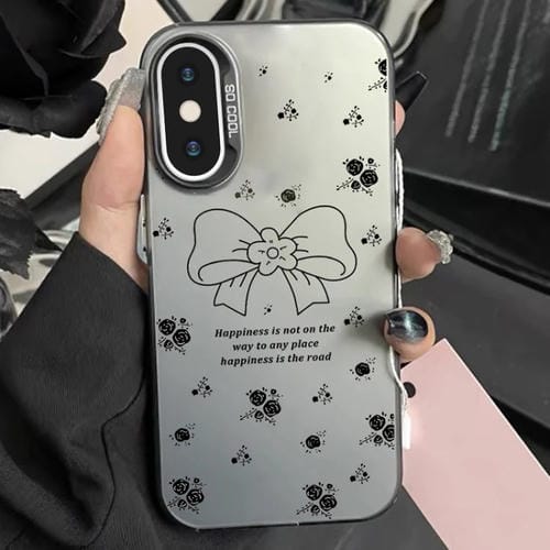 Funda híbrida para iPhone X Xs TPU y PC con pintura plateada (Lazo Floral Negro)