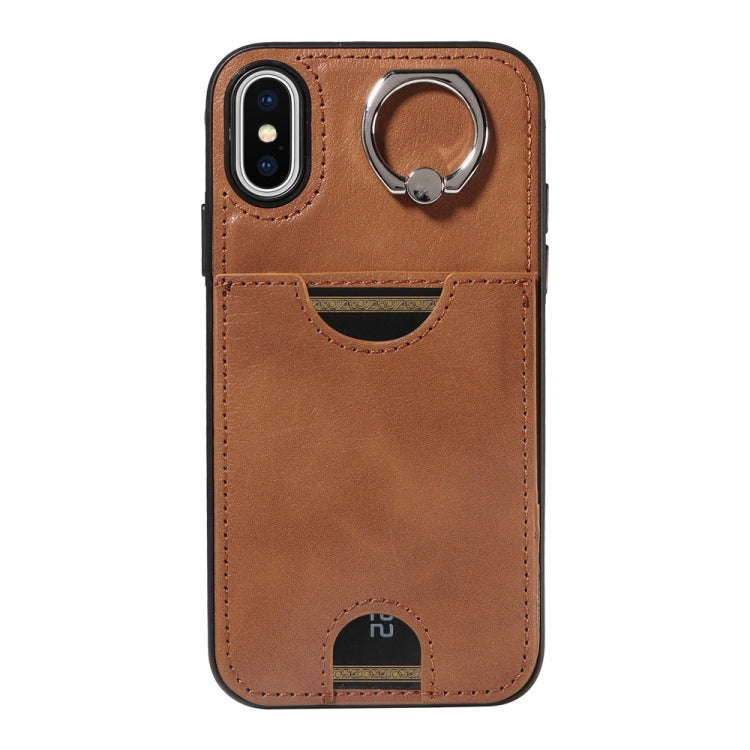 Funda para Teléfono iPhone X Xs con Soporte para Anillo y Ranura para Tarjeta (Marrón)