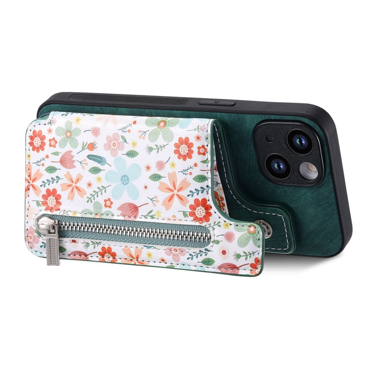 Funda Trasera para Teléfono iPhone X/Xs con Billetera y Cremallera Pintada Retro (Verde)
