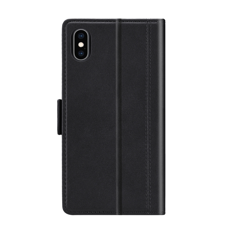 Funda de Cuero para iPhone X / Xs Lc.Imeeke Hebilla Magnética Pu + TPU con Tapa Horizontal Soporte Ranuras Tarjetas Billetera (Negro)