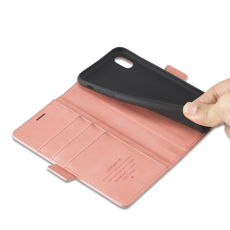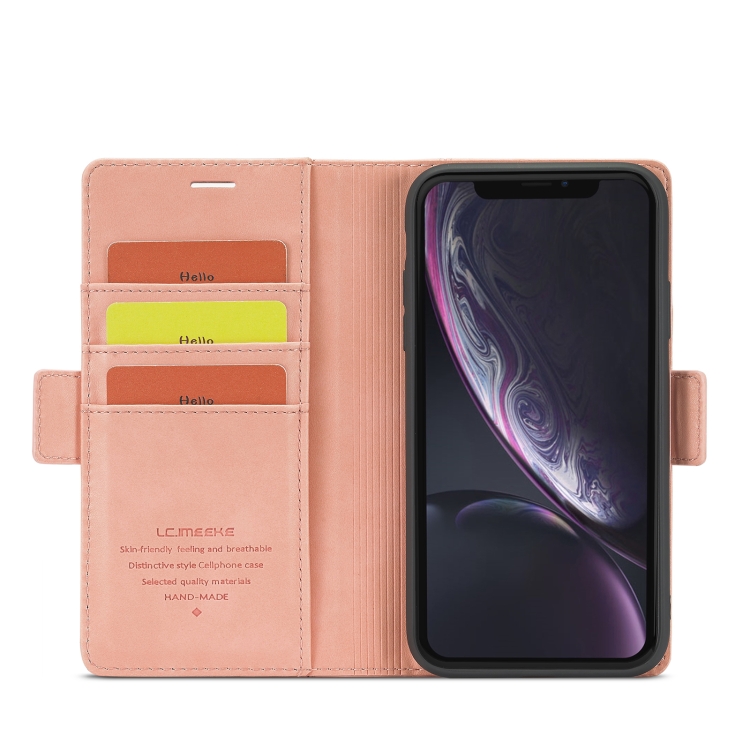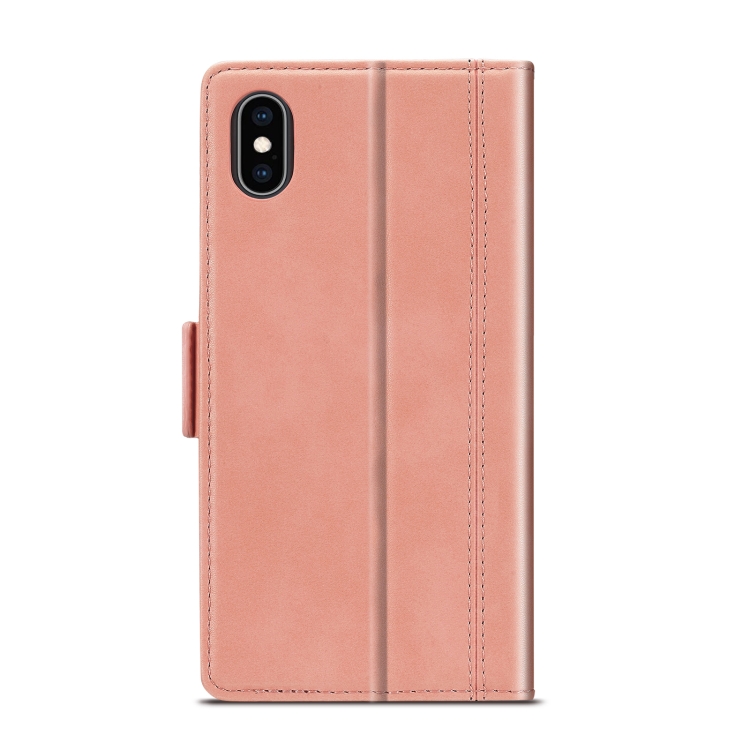 Funda para iPhone X Xs Lc.Imeeke Hebilla Magnética PU + TPU con Tapa Horizontal Soporte Ranuras Tarjetas Billetera (Oro Rosa)