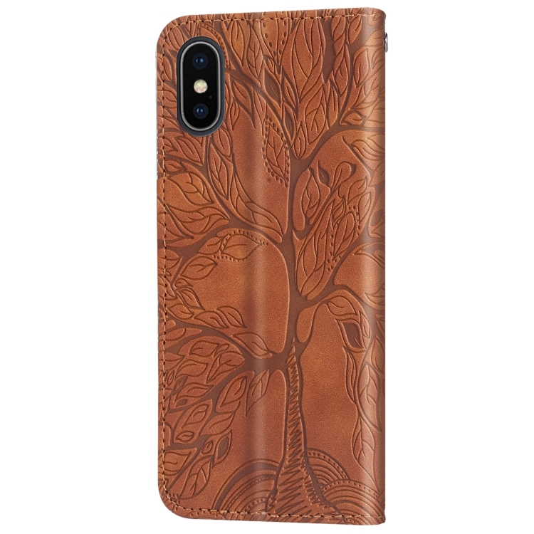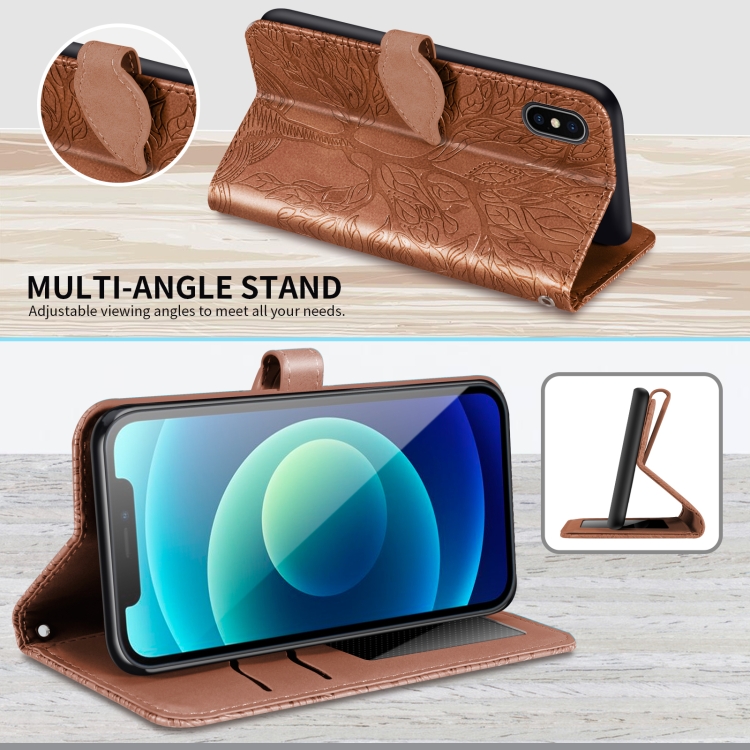 Estuche de Cuero Life Of Tree para iPhone X Xs con Tapa Horizontal Soporte Ranura Tarjeta Billetera Marco Fotos Cordón (Marrón)
