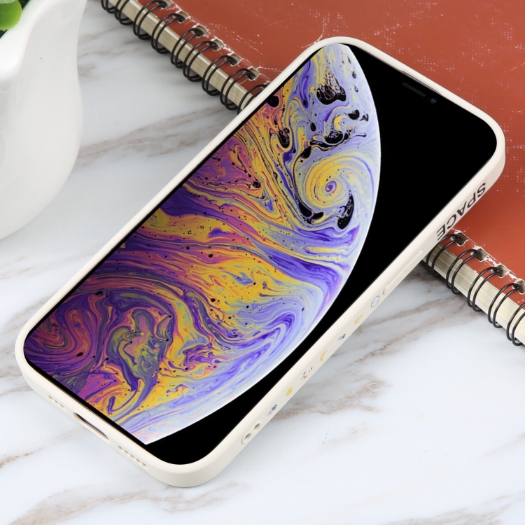 Funda de teléfono iPhone X Xs Patrón de Astronauta Borde Recto Silicona (Planet Landing-Blanco)